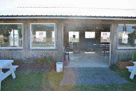 | Outside the pavilion, on the patio, there is a wind breaker wall facing the ocean. There were two couples grilling out on the patio, and I though they were crazy because it was so windy. When I went over to remark on their bravery and to see if we were invited for dinner, they told me it wasn't too bad in front of the wind break wall. They invited me in to check it out for myself. I found it seemed like a beautiful calm day on the patio. The couple told us we needed to do the jet boat rides on the river before we leave. The couple we met in Arizona told us to do the jet boats also. With two recommendations of the jet boats, we put it on our list of things to do before we leave Gold Beach. |