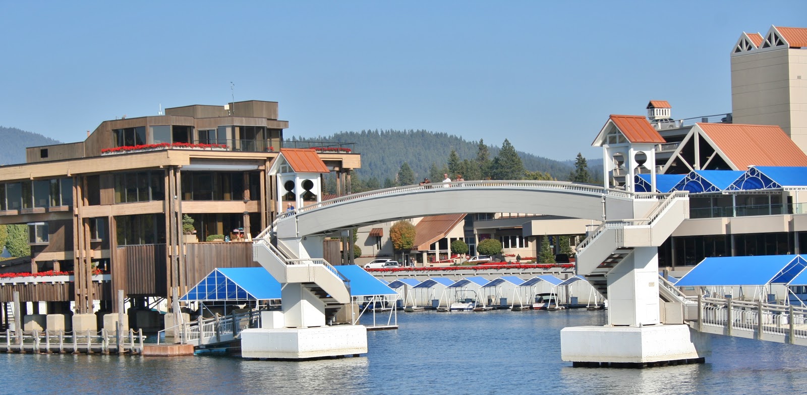 Coeurd' Alene resort and their blue boat covers. |