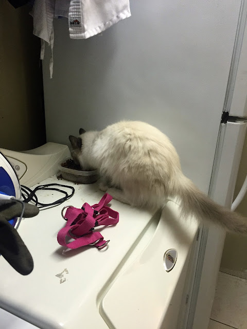 While they were gone, I told Alisha I would take care of Robin her cat and Maggie May, her dog. Unfortunately when I came to her house to feed them, Robin was no where to be found. After scouting the house, we realized he must have slipped out the door either that morning or night before when Hayleah and her friends were spending the night. (Before Hayleah headed back to collage). At 10 pm that night, I talked Joe into going back to the house and I stood outside calling for Robin. After a while I heard a faint meow off in the distance. I kept calling and soon he was running to the door. He was a hungry kitty!